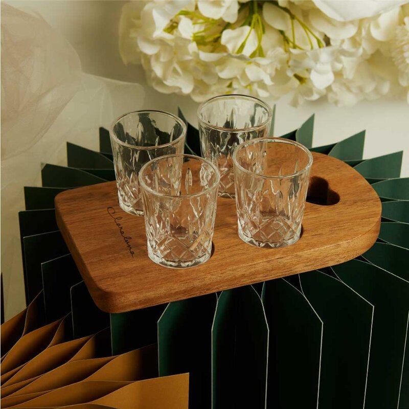CLARALUNA* 2026 VASSOIO ACACIA CON 4 BICCHIERINI 20.5X12.1X1.5 26065